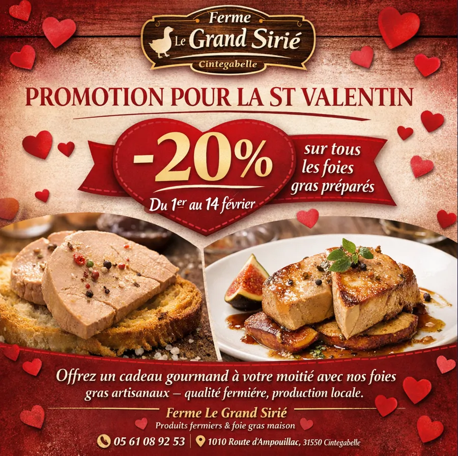 La ferme Le Grand Sirié à Cintegabelle est à votre écoute pour toute demande concernant nos canards gras, foies gras maison, volailles et charcuteries artisanales. Contactez-nous dès aujourd’hui pour réserver vos produits fermiers ou obtenir plus d’informations.